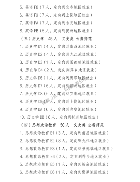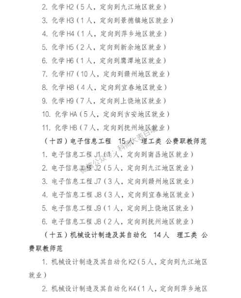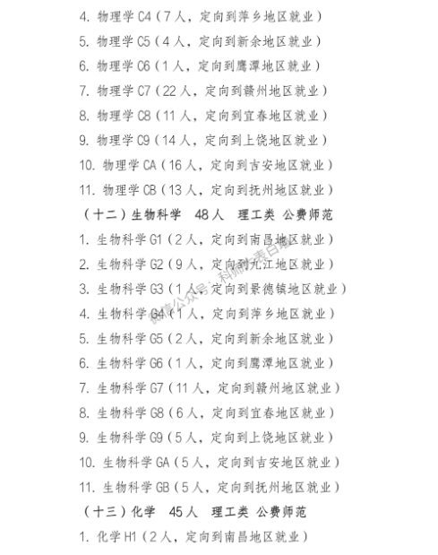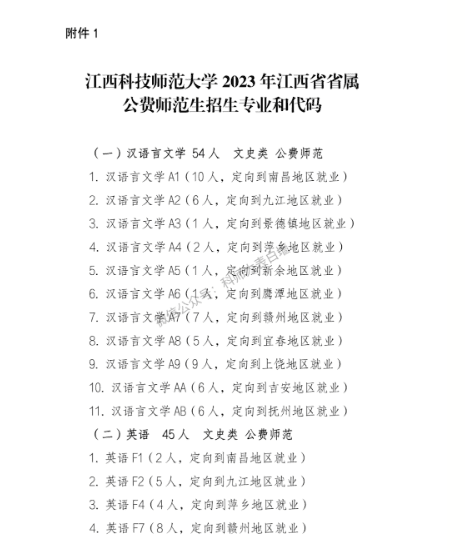 1.专业代码首字符为A—H的公费师范专业,高考文化成绩达到江西省文理科类相应第一批本科最低控制线;专业代码首字符为J—N的公费职教师范专业,高考文化成绩达到江西省文理科类相应第二批本科最低控制线;专业代码首字符为P—S的公费师范及公费职教师范专业,为美术与设计学类专业与音乐学类专业,专业成绩和文化成绩均达到江西省美术与设计学类及音乐学类本科批次专业和文化最低控制线。